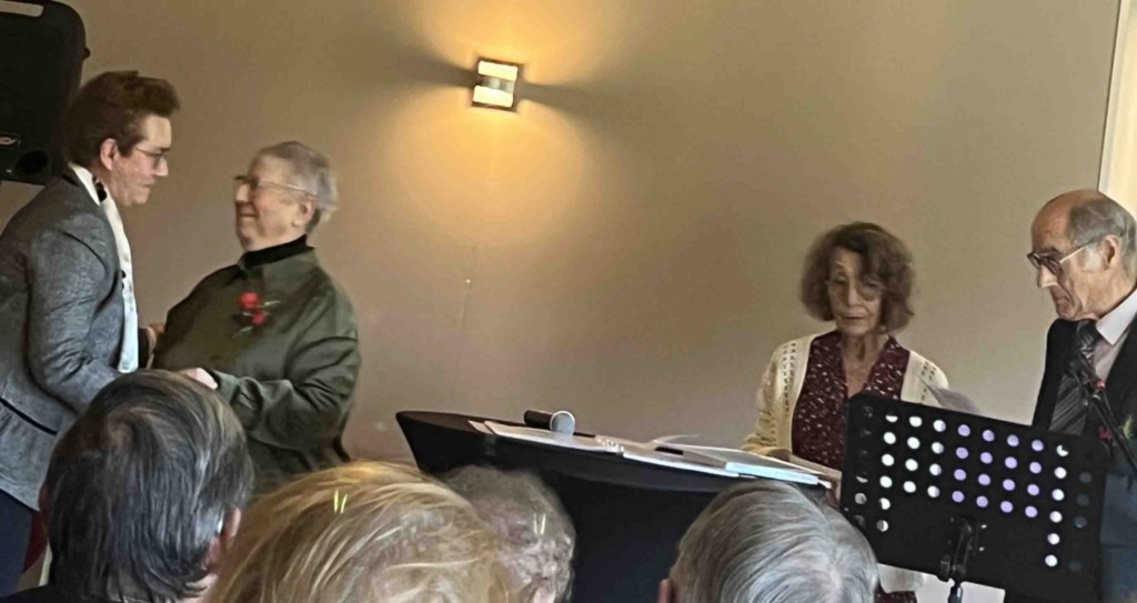 Samedi 13 mai 23, remise des prix de l’Essor poétique où je représentais mon amie Maïté Bitaine de la Fuente qui était honorée pour 2 prix : 1er prix en nouvelle et 2ème prix en conte. Bonne ambiance dans la Salle Teillet à La Roche-sur-Yon, le président Mr Jean-Paul Vivier était « aux petits soins » pour ses invités poètes. Le maire de La Roche-sur-Yon Luc Bouard, a fait passage remarqué et nous a laissé dans « les bonnes mains » de son adjoint culturel, Maximilien Schnel, qui a écouté avec grand intérêt la lecture de mon conte. Le grand prix pour la 2ème fois, Marcel Touzeau, nous a charmé avec sa poésie classique. Retrouvailles avec le multirécidiviste Dominique Simonet et son épouse. À signaler, deux duos primés, un papy et son petit-fils et une mamie et sa petite fille, bravo aux jeunes de suivre le chemin de leurs anciens ! La chaleur de l’assistance a chassé le temps gris et au verre de l’amitié le soleil était présent.